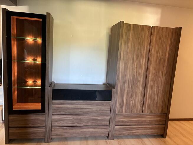 Zestaw składa się z witryny (kredens), komody z lustrem i szafki RTV. Meble znajdują się w dobrym stanie. Odbiór ...